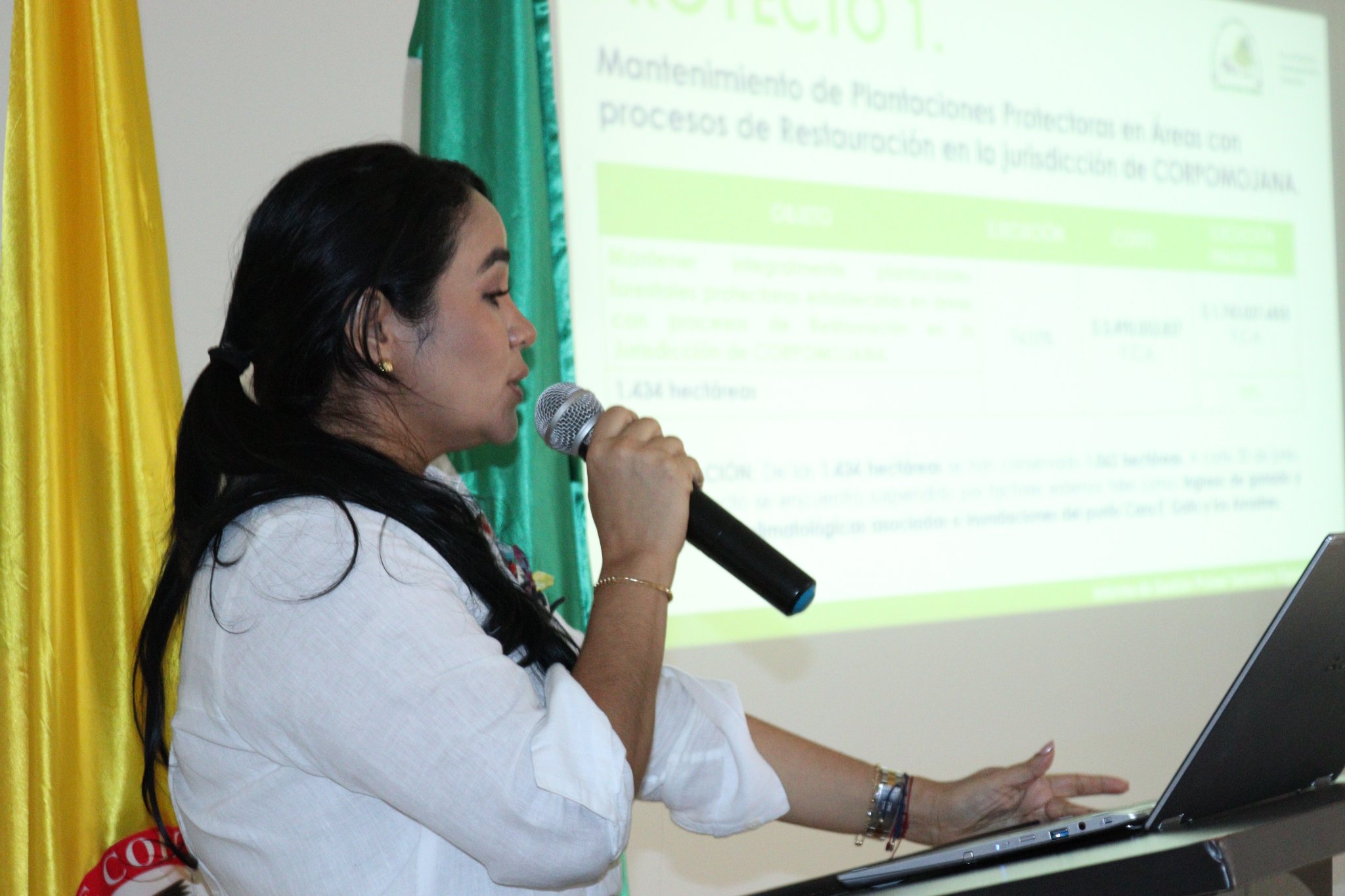 La Directora General de la Corporación, Liliana Quiroz Aguas enmarcó su presentación en los importantes avances que se han realizado durante esta vigencia, siendo lo principal la gestión de proyectos ante los diferentes fondos del ministerio que generan un gran impacto ambiental, social y económicos para la región, con los que se han generado 1.289 empleos que para esta época de crisis se han convertido en una oportunidad económica para las familias de la jurisdicción, el apoyo a la meta del Gobierno Nacional para sembrar 180 millones de árboles a la que se le apuesta con la implementación de 4 proyectos de restauración que corresponden a 2.315.997 árboles más los 8.000 árboles sembrados en las jornadas de Sembratón realizadas con entidades públicas, privadas e Instituciones Educativas de la jurisdicción.